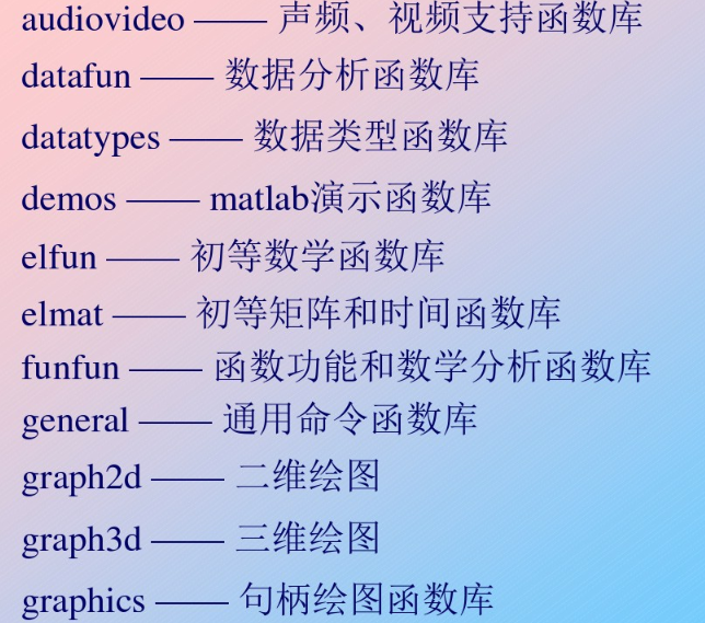 - 查询各个函数库或者工具箱中的函数,用help