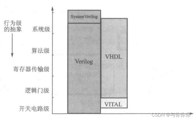 Verilog适合系统级( system)、算法级(alogrithem)、寄存器传输级(RTL)、逻辑级(logic)、门级(gate)、电路开关级(switch)设计。