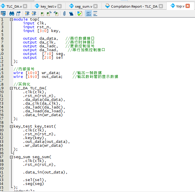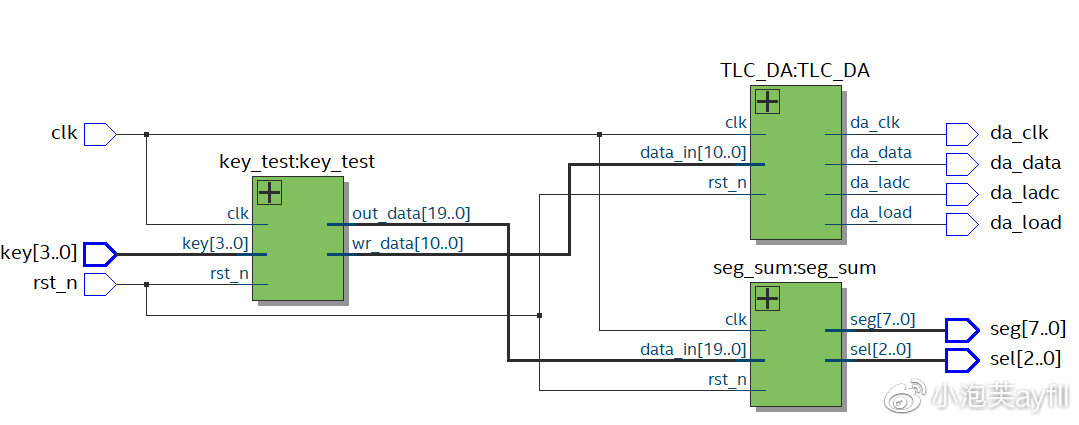 以上就是沉静路灯最近收集整理的关于FPGA学习之数模转换(TLC5620)(通过4个按键输入,输出数模转换需要的数据和数码管显示需要的数据)的全部内容,更多相关FPGA学习之数模转换(TLC5620)(通过4个按键输入,输出数模转换需要内容请搜索靠谱客的其他文章。