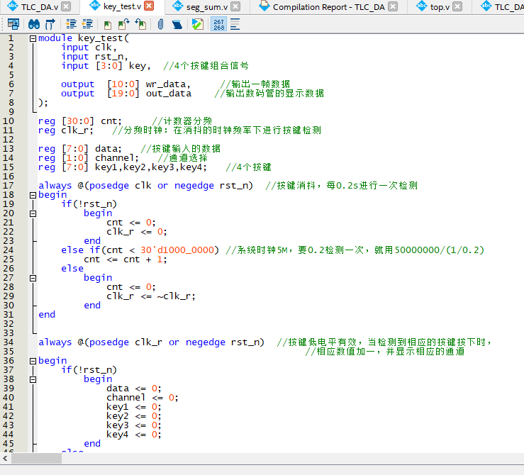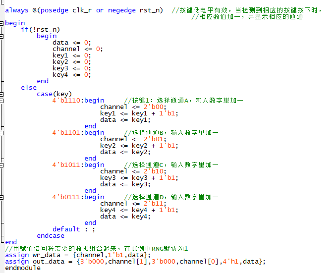 always @(posedge clk_r or negedge rst_n) //按键低电平有效,当检测到相应的按键按下时,