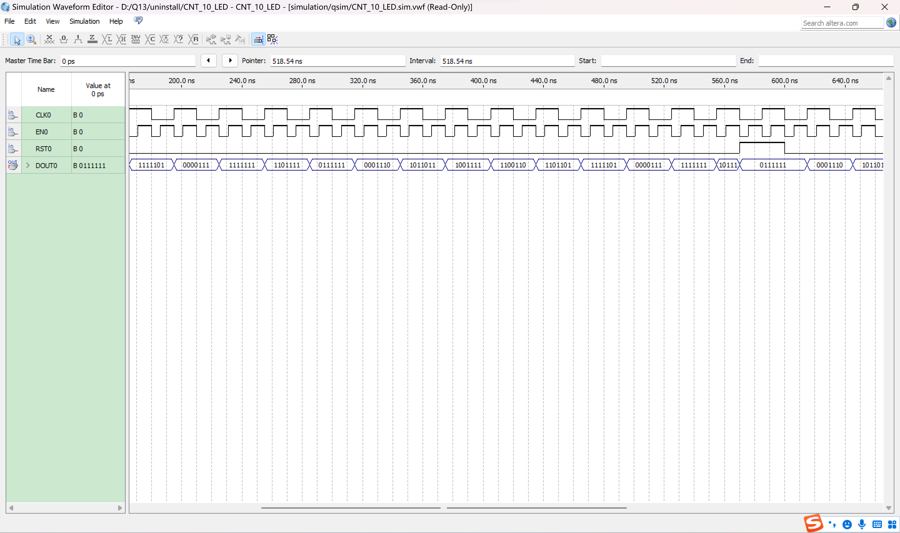 当RST0为高电平时,计数归零。