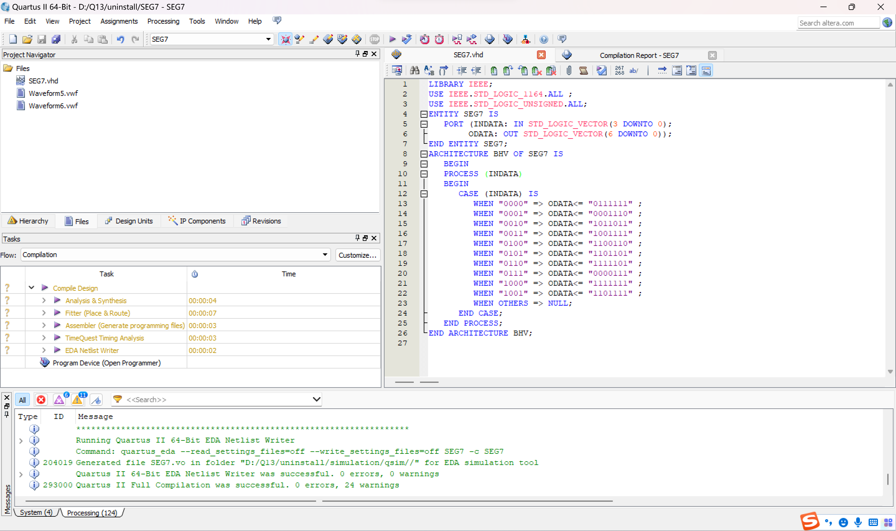 WHEN "0111" => ODATA<= "0000111" ; --7
