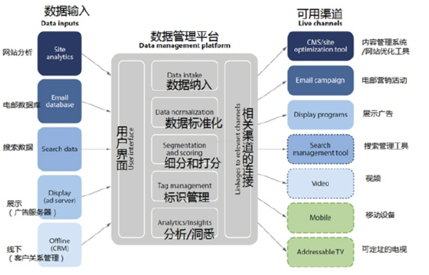 "DMP(Data Management Platform)数据管理平台:数据管理平台意味着中央数据控制管理,把所有数据按不同属性进行粒度细分。DMP能够帮助所有涉及广告库存购买和出售的各方管理其数据(不管是第一方还是第三方),按需求进行数据回传,或将定制数据传入某一平台以进行更好地定位。其实DMP属于DSP的一部分核心内容,专职负责给DSP提供数据决策支持。