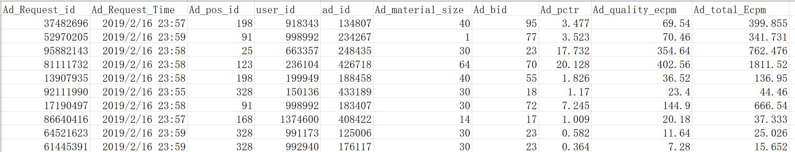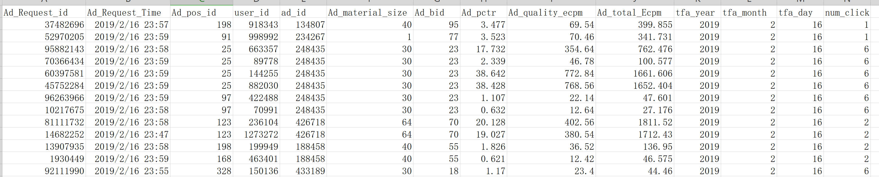Exposure_Log_Data_columns = ['Ad_Request_id', 'Ad_Request_Time', 'Ad_pos_id', 'user_id', 'ad_id', 'Ad_material_size',