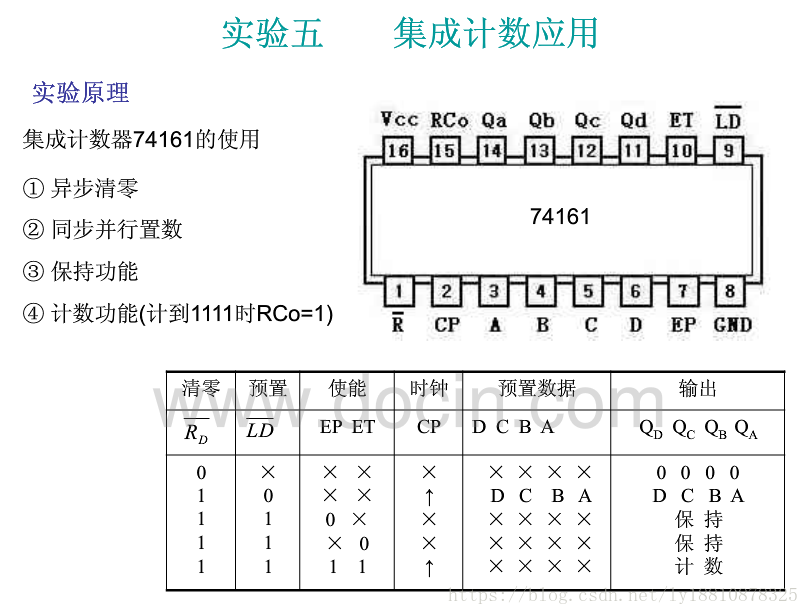 上网找了关于74161的引脚设置,如图: