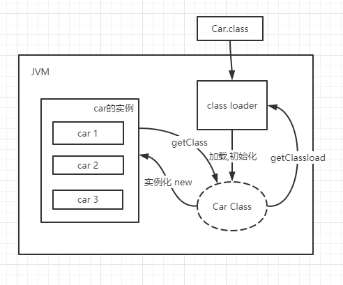 - 在堆中产生一个代表这个类的Class对象,作为方法区中这些数据的访问入口