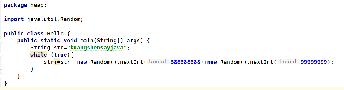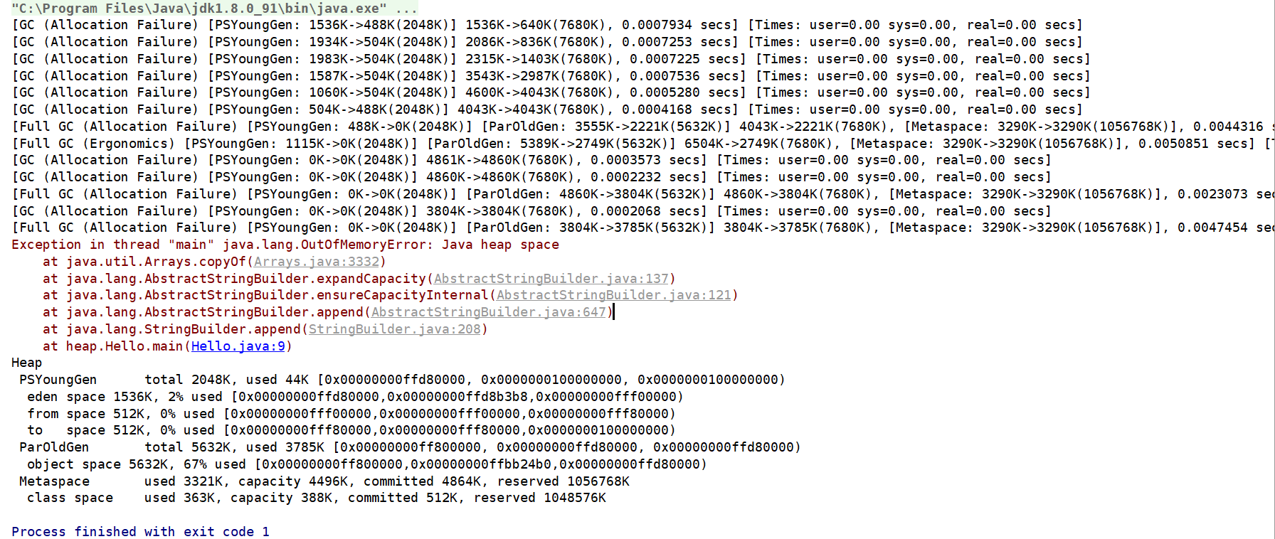 我们设置堆内存为8m,然后让虚拟堆内存爆掉,打印信息