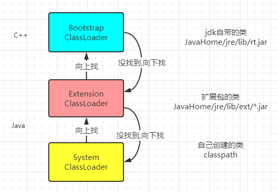 1.启动类(根)加载器:C++实现的,加载java核心库,加载环境变量下的rt.jar,resources.jar,charsets.jar和类