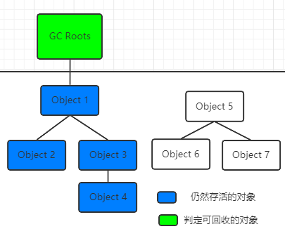 当一个对象到GC Roots没有任何引用链相连的话,则证明此对象是不可用的