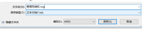 2、另存为“管理员授权.reg”。