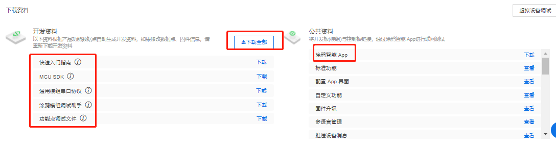 ->下载资料 主要关注MCU SDK(数据点文档)。对协议和数据流进一步了解