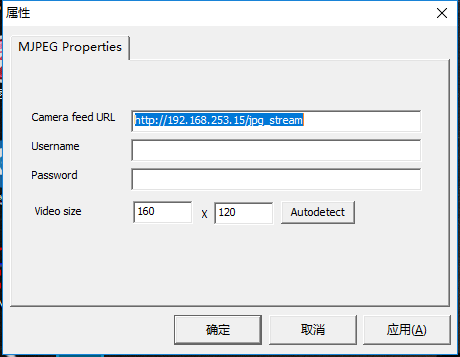安装成功后,打开摄像头,输入你的WiFi视频的地址,然后点击autodetect,正常的话会显示成功接收到数据