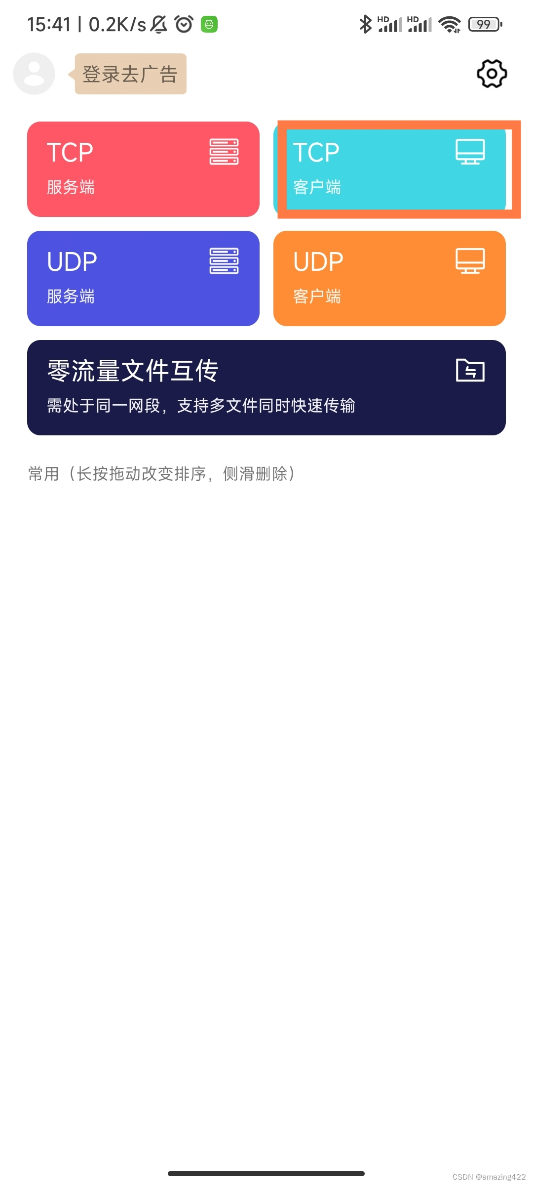 再打开手机APP网络调试精灵,我们选择TCP 客户端
