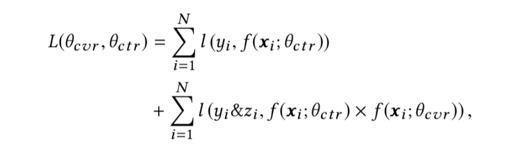 loss核心还是logloss,但是由两部分组成了,即pctr部分的logloss,以及pctcvr部分的logloss,也就是说虽然pcvr是我们想要的目标,但是他是被隐含训练出来的,是通过pctr、pcvr、pctcvr三者的关系隐含训练出来的副产物。