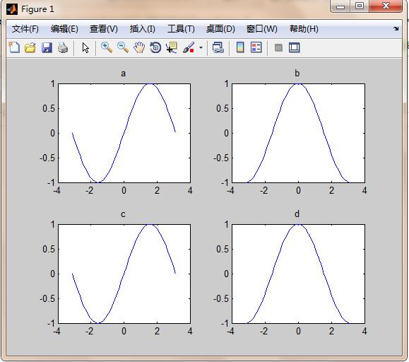创建子图象需要用到subplot命令,其形式为subplot(m,n,p),意义为在窗口创建mxn个子图象,按照m行n列来排布,p为子图象的序号。