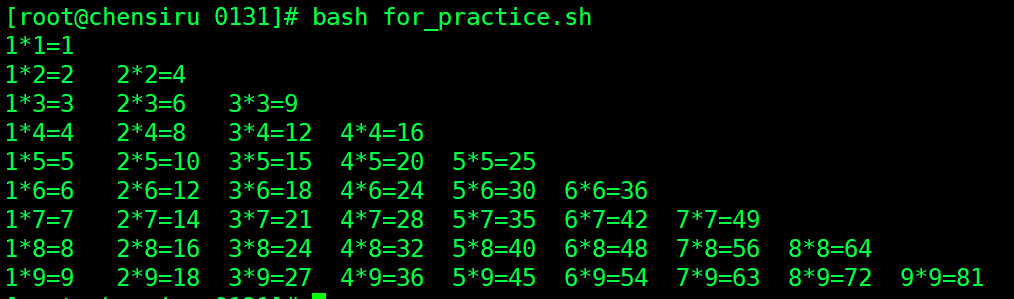 echo-n-e"$j*$i=`echo $(($j*$i))`t"
