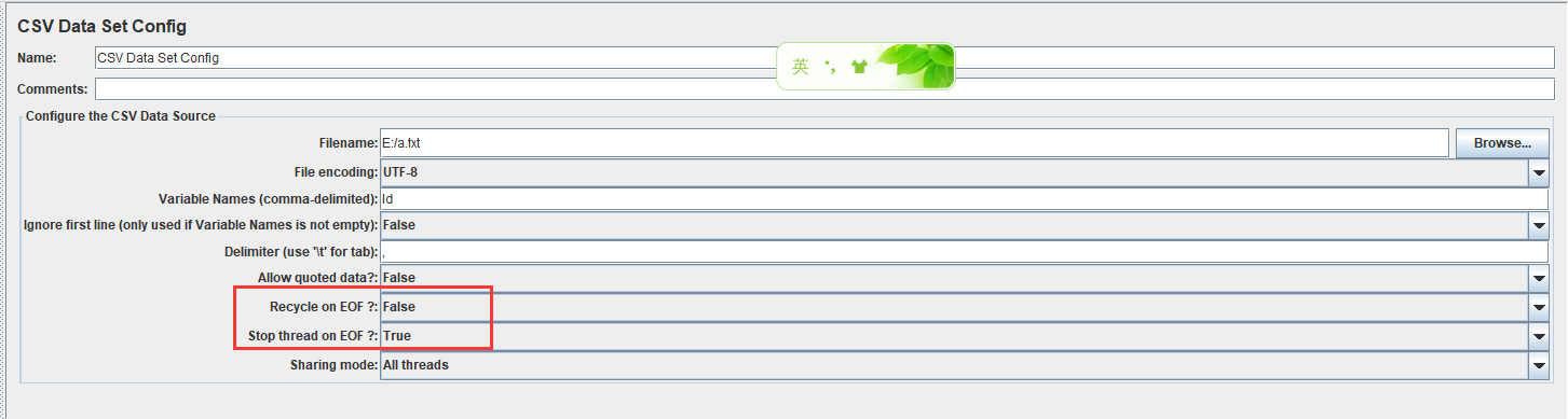 CSV Data Set Config配置元件默认情况下,读取的文件仅打开一次,每个线程读取该文件不同的行。行读取的顺序取决于请求执行的顺序。