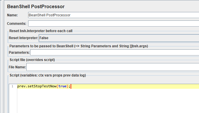 3、防止线程重复执行:线程的最后一个请求下增加BeanShell PostProcessor
