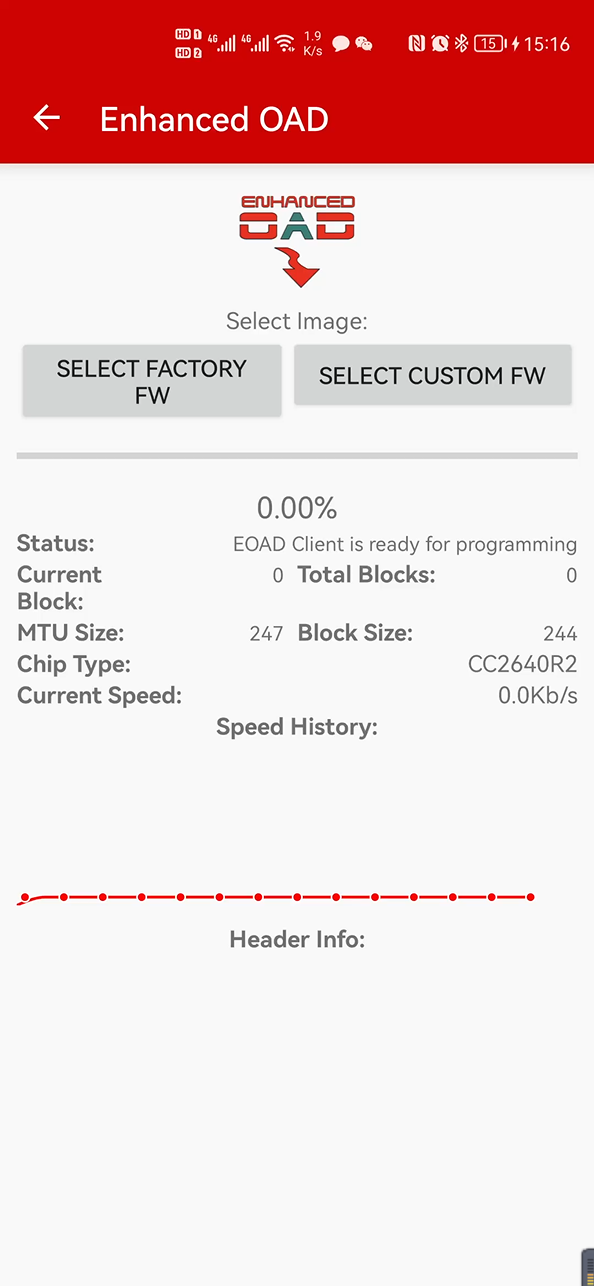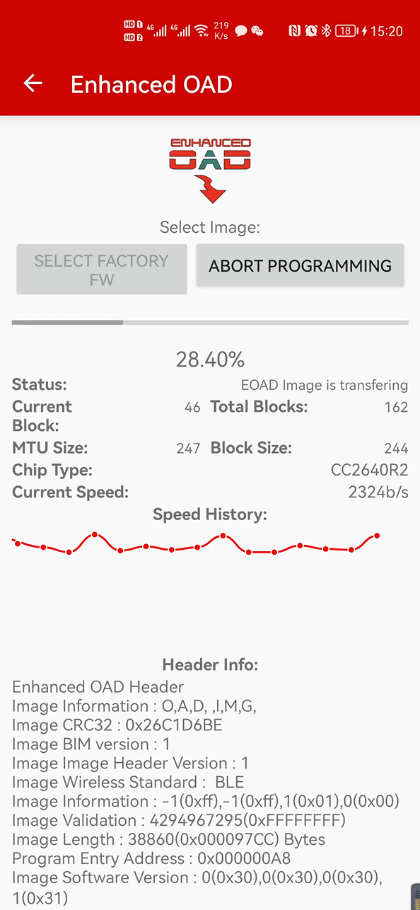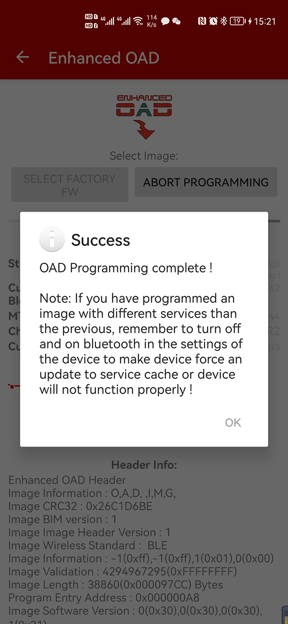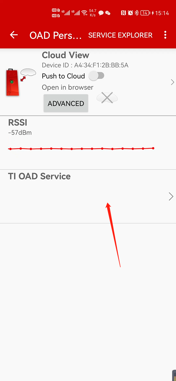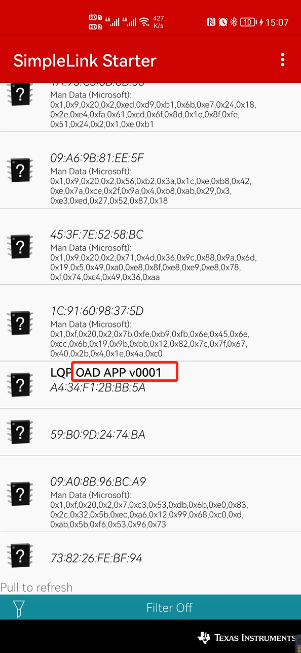 重启后就可以搜索到这个设备,重新连接后就可以进行OAD固件升级
