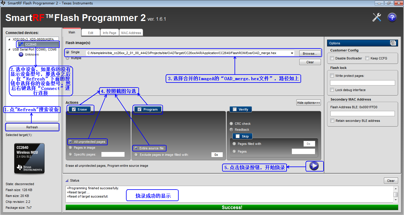 下面,我们来具体了解一下内置Flash的设备配置OAD的方法。