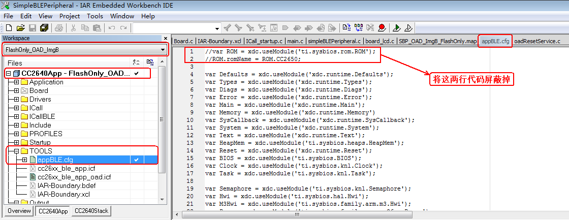 目录下的“appBLE.cfg”文件,将开头的如下两行代码屏蔽掉:
