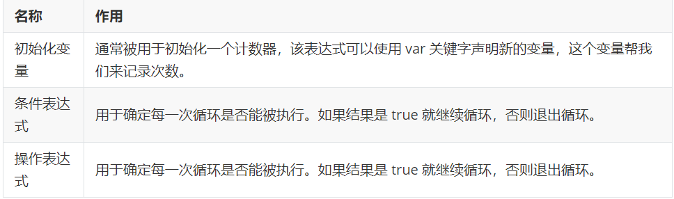 * 3 循环体代码执行完毕后,程序会继续判断执行条件表达式,如条件仍为true,则会继续执行循环体,直到循环条件为 false 时,整个循环过程才会结束