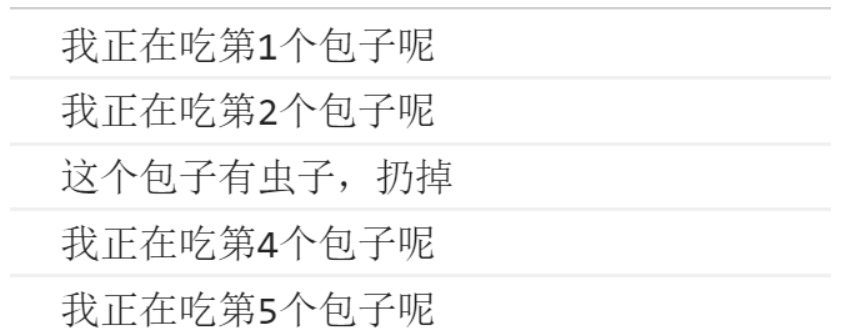 例如,吃5个包子,吃到第3个发现里面有半个虫子,其余的不吃了,其代码实现如下: