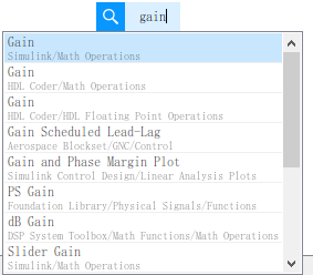 快速添加block的方式。比如添加一个放大器,直接在空白处双击,然后输入gain。结果如下所示