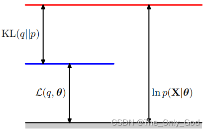 lnp(X∣θ)≥L(q,θ),即$ mathcal L(q,theta)
