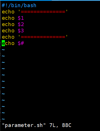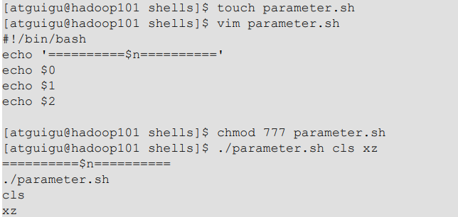 $n 功能描述:n 为数字,$0 代表该脚本名称,$1-$9 代表第一到第九个参数,十以 上的参数,十以上的参数需要用大括号包含,如${10}