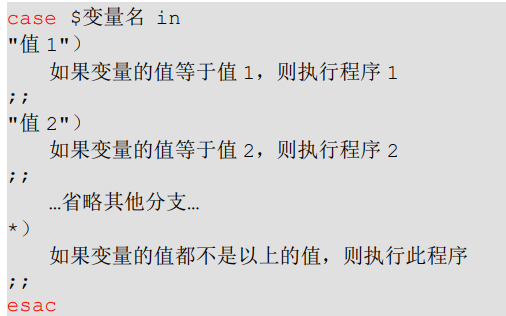(1)case行尾必须为单词“in”,每一个模式匹配必须以右括号“)”结束