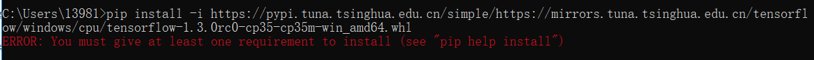 使用pip install 命令时遇到You must give at least one requirement to install (see "pip help install")