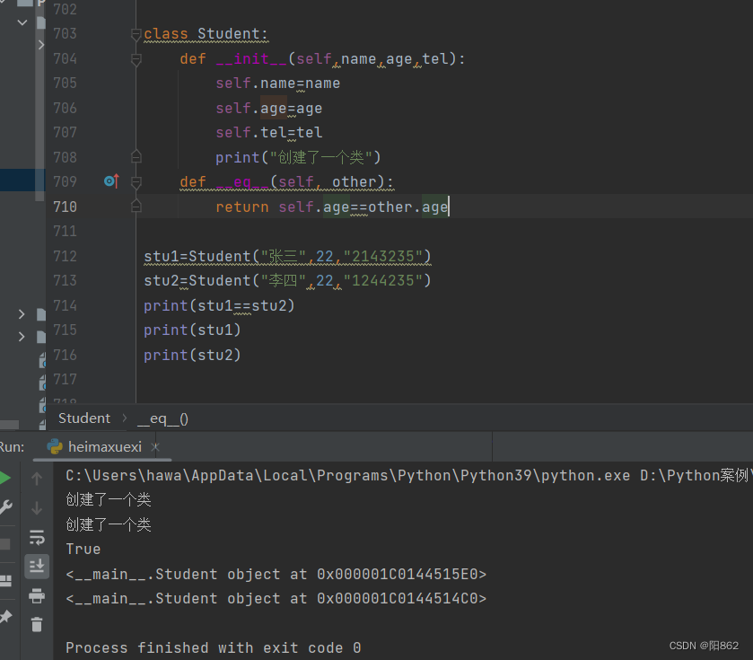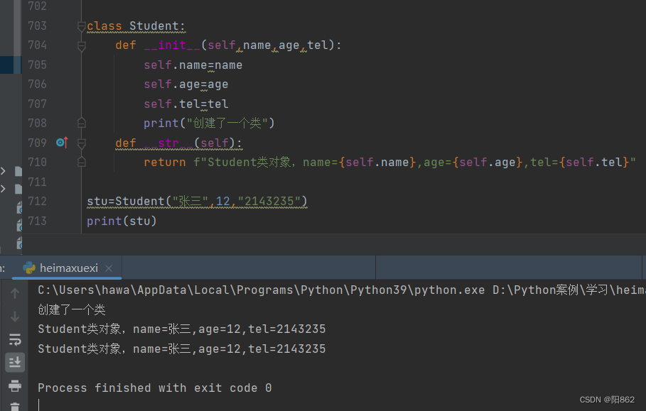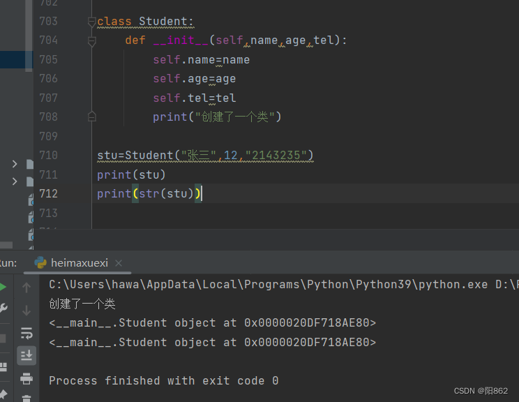 内存地址没有多大作用,我们可以通过_ _str_ _方法,控制类转换为字符串的行为。