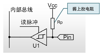为了解决这个问题,可以在输入引脚处加一个弱上拉电阻,如图所示: