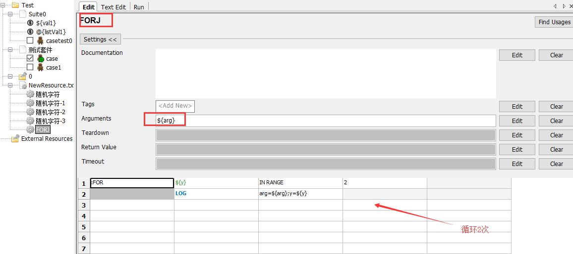 首先,在Resource中,添加new keyword :FORJ(举例:循环2次)