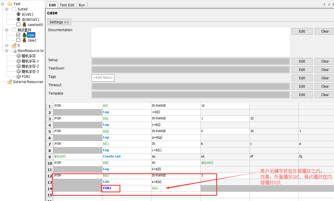在RobotFramework中,循环里面加循环需要 User Keyword,即:用户关键字;