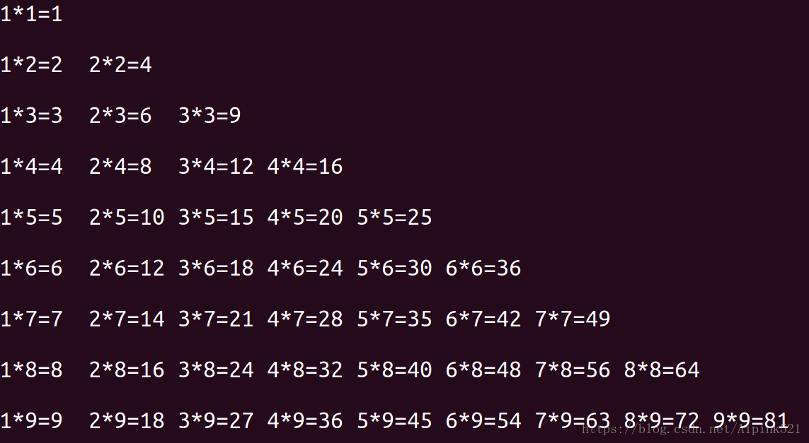 <3>while嵌套应用二:九九乘法表