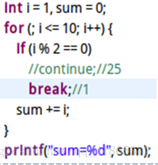a.一个循环中可以包含多个break语句,但一般只有一个;