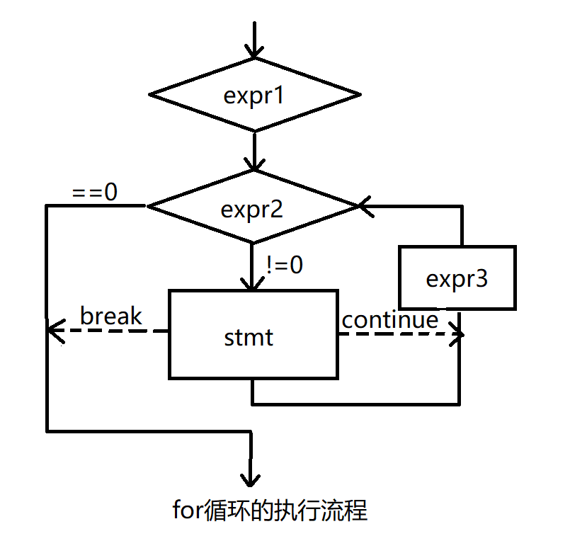 - 遇到continue时,只是跳出本层循环,循环是否继续进行由expr的值决定。