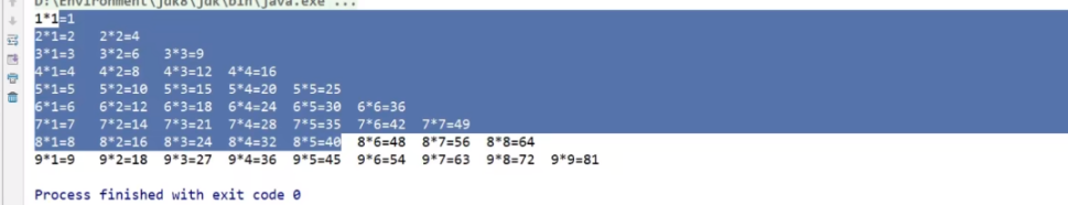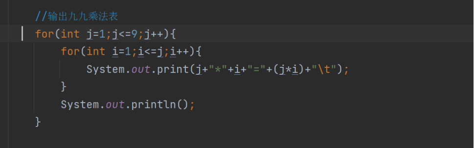 这个是九九乘法表的代码,用的两个for循环的判断,j和i控制的是两个数,但是i不能大于j,不然无法实现。