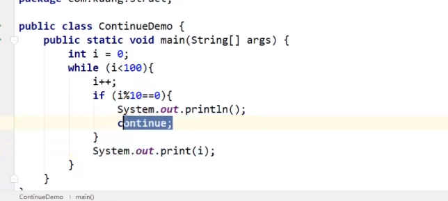continue则是跳过那个符合条件的值,循环还会继续执行完毕