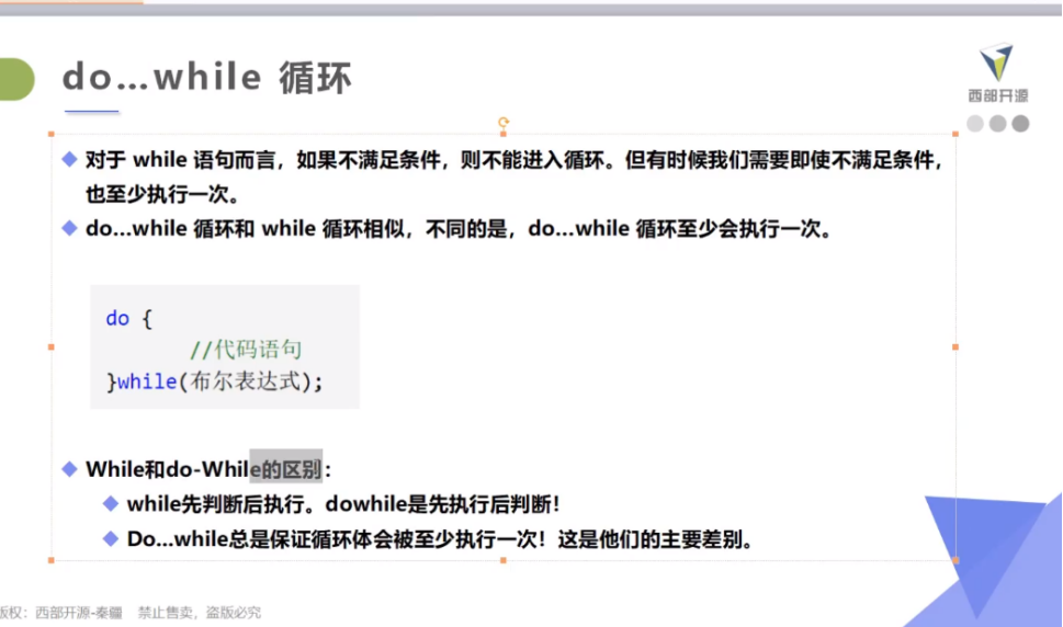 这个循环结构和while的区别就是,他至少会执行一次,不管他是否符合这个条件。