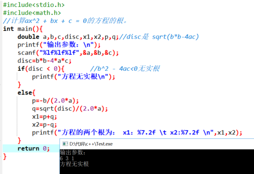 double a,b,c,disc,x1,x2,p,q;//disc是 sqrt(b*b-4ac)