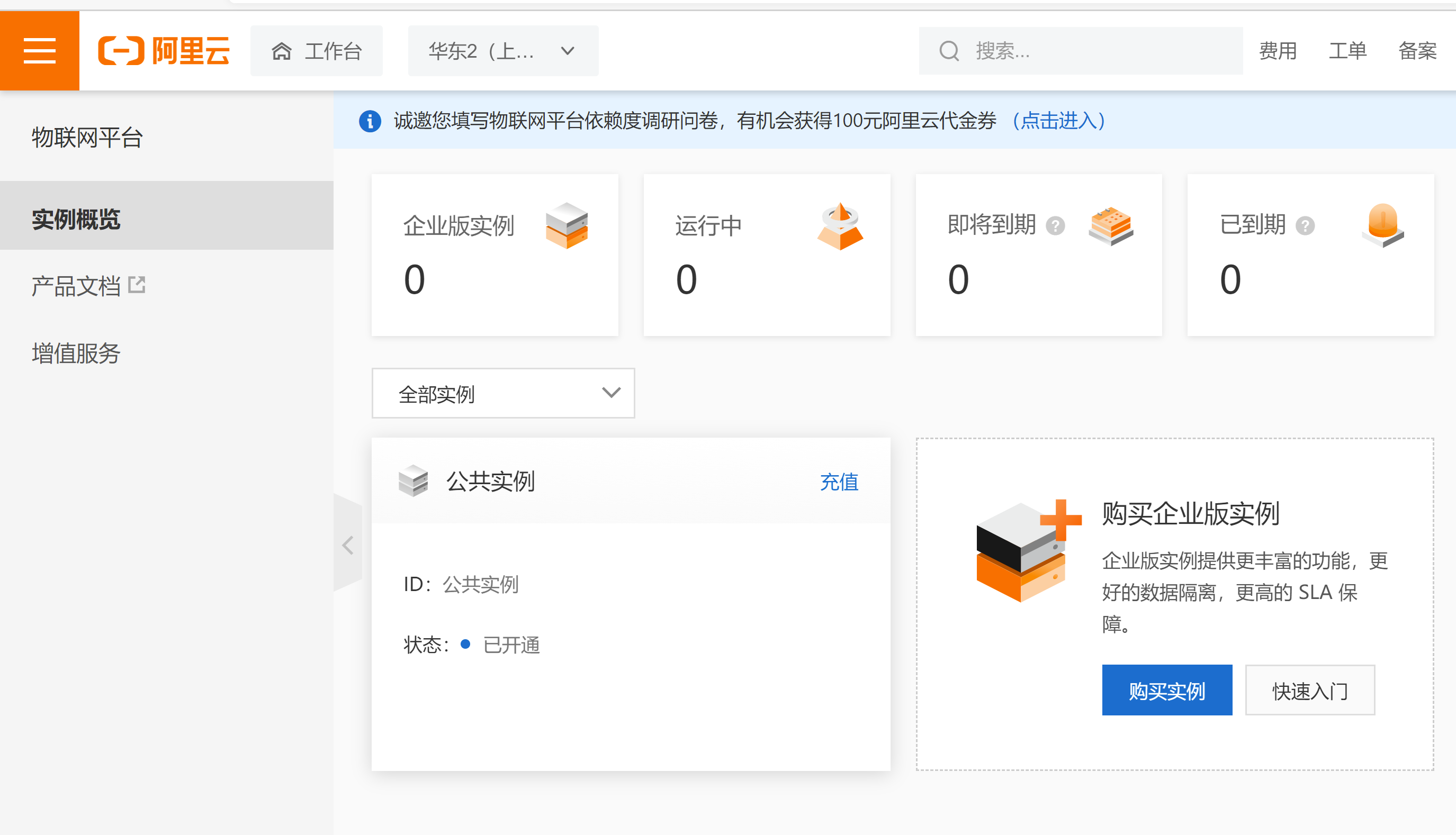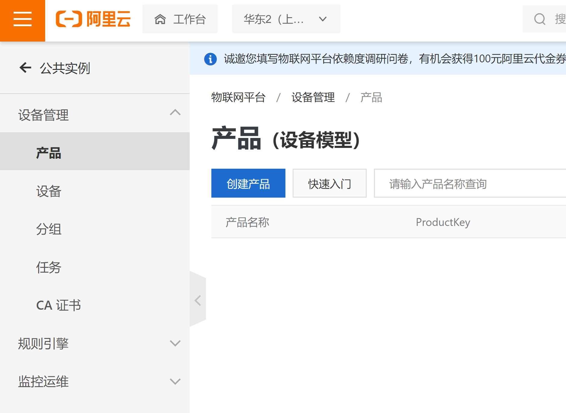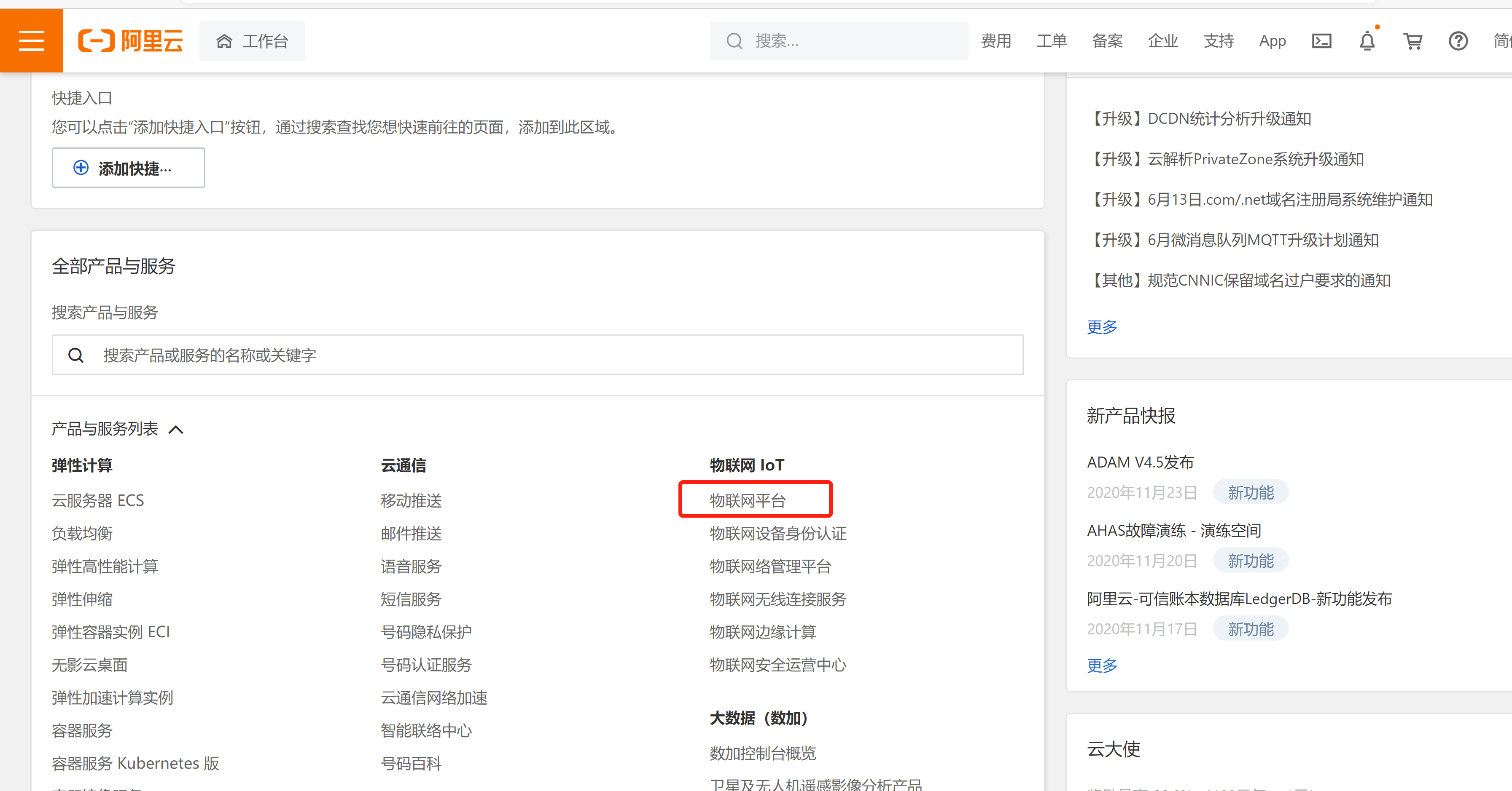 登录阿里云,选择物联网平台