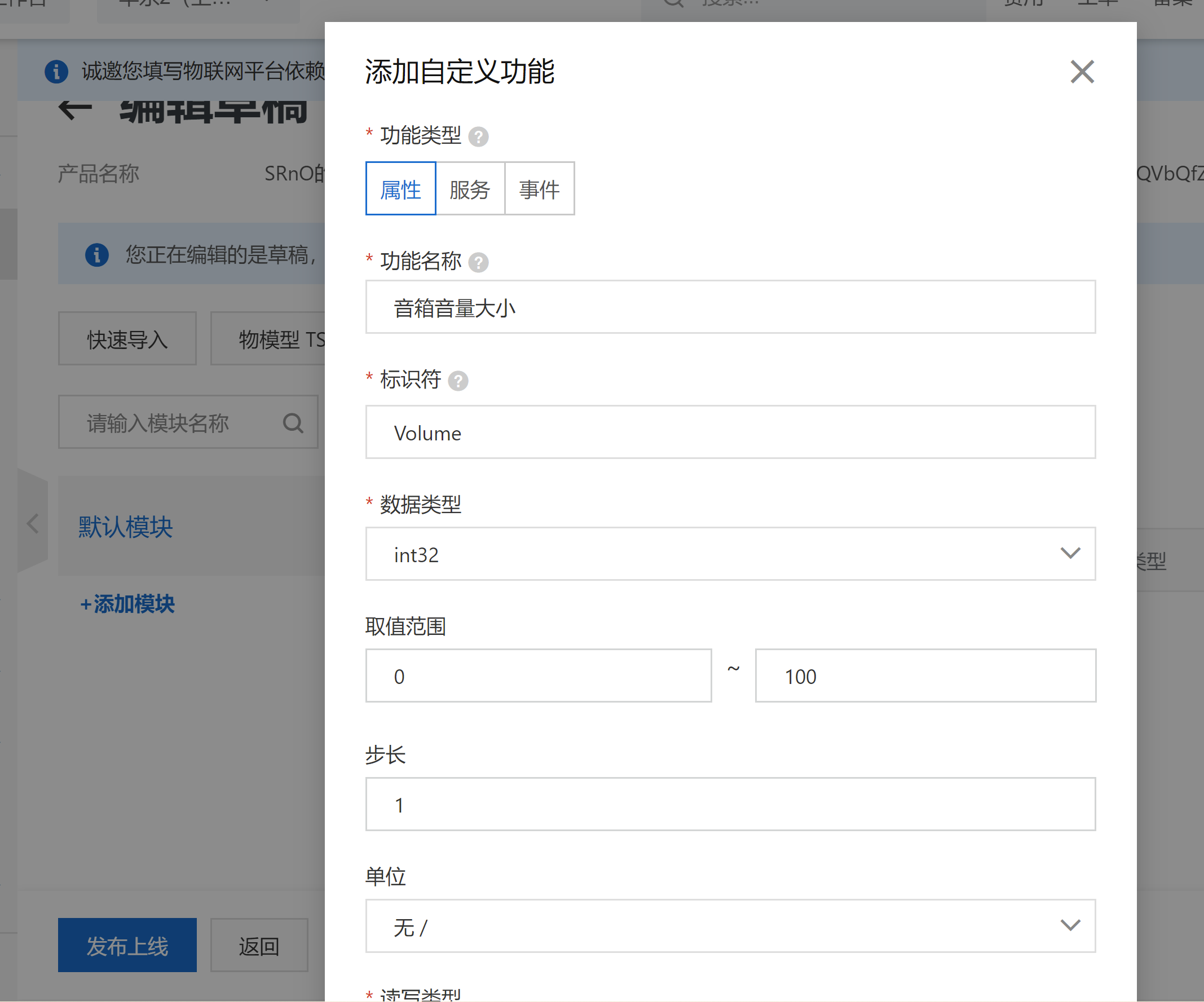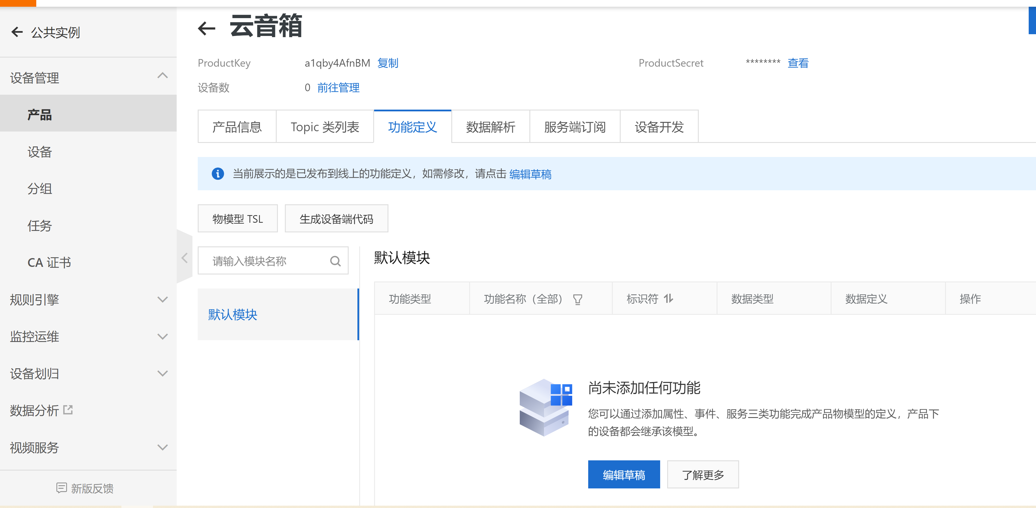 然后前往定义物模型-编辑草稿