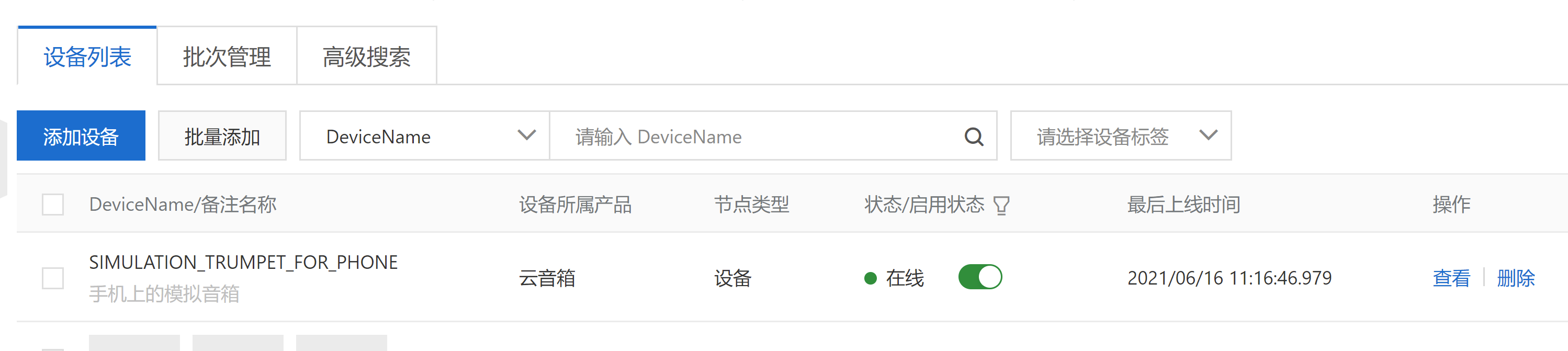 启动app后,设备状态会从未激活变为在线状态