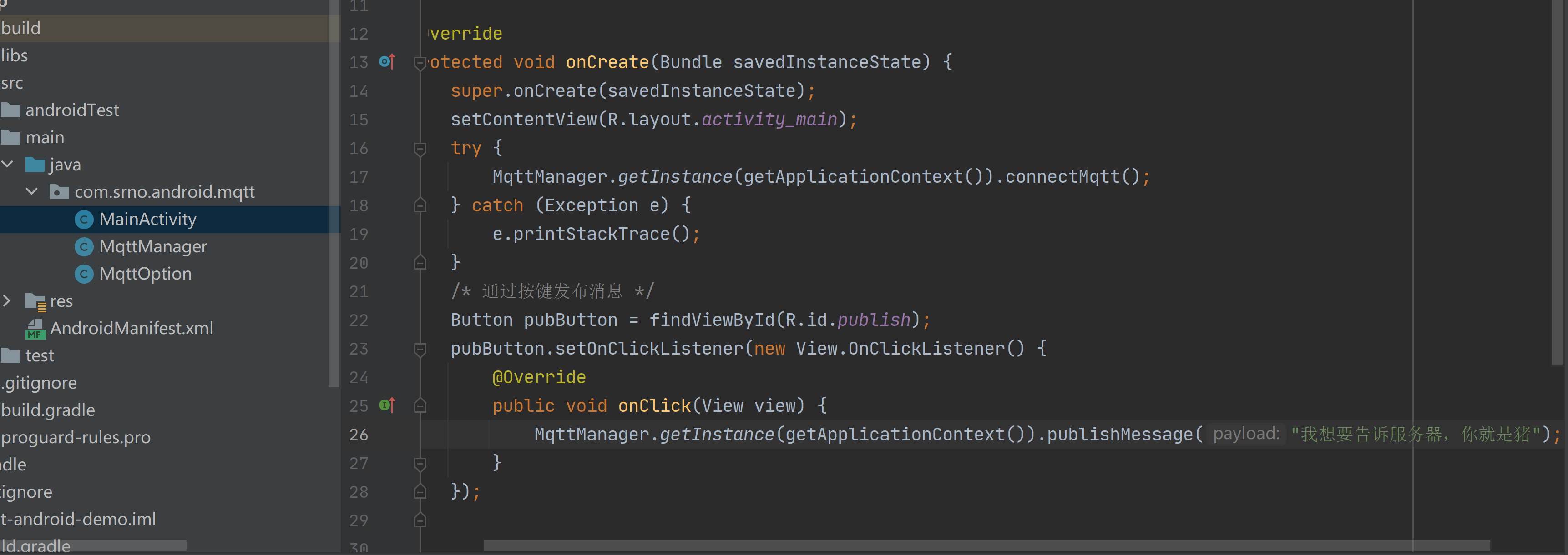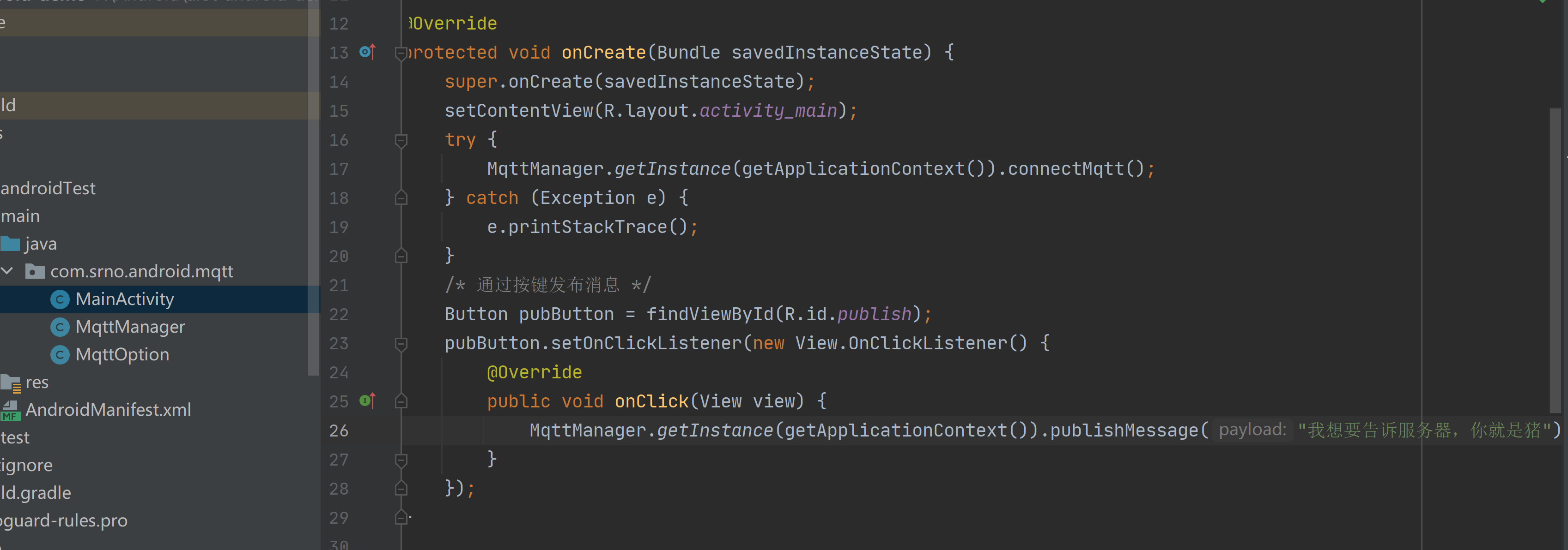 点击安卓中按钮,发送消息给mqtt服务器