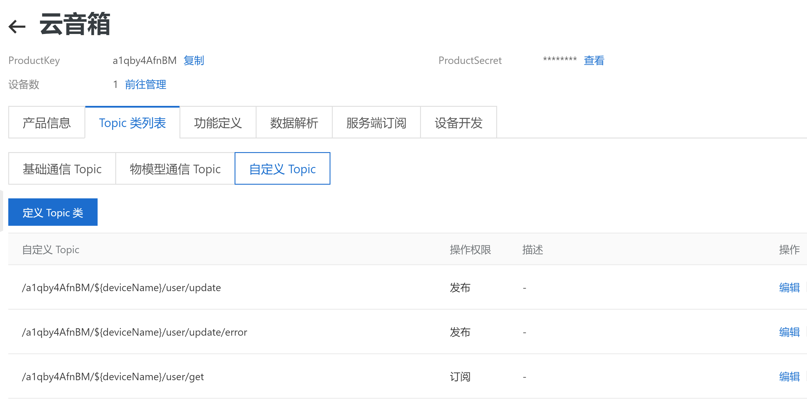 选择设备管理-选择产品-创建产品