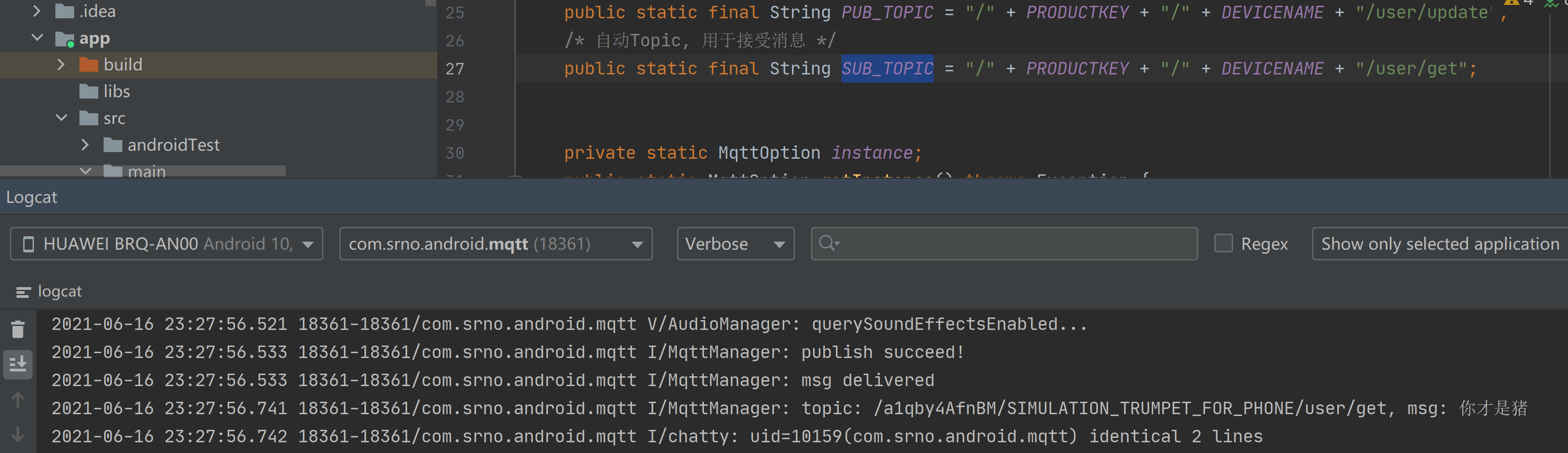 Android端收到mqtt服务器传来数据