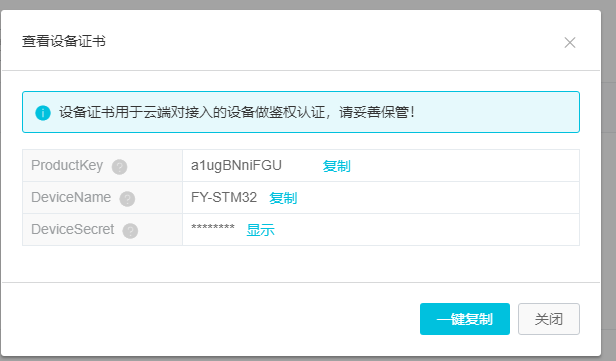 其实这个是这个设备的三元素,这里我们一件复制,然后粘贴在一个txt里面先保存起来,这样比较简单快速,这个其实在设备信息里面也可以看到,不过那要一个个复制就显得麻烦。